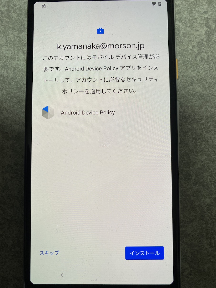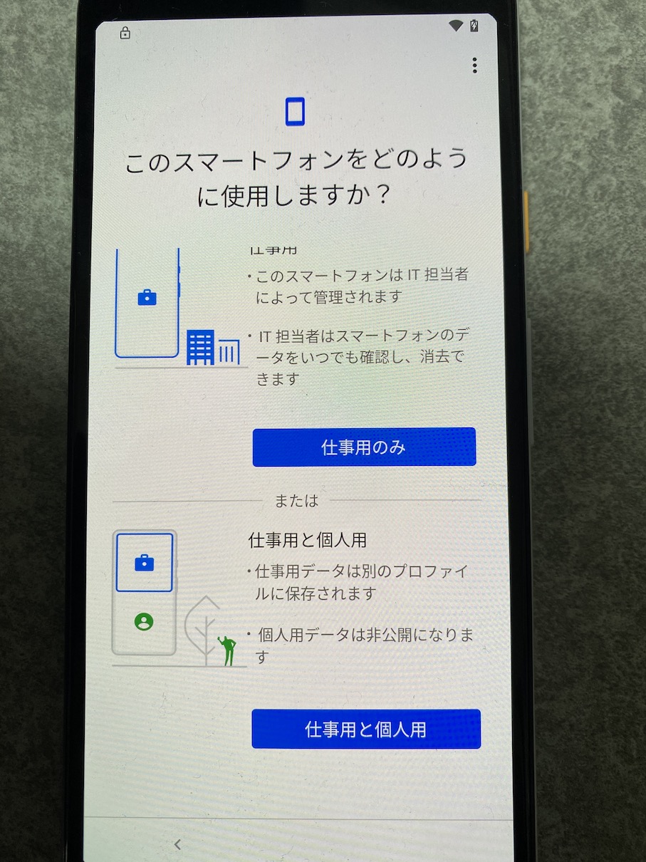 仕事用のみでセットアップした場合は、会社所有という旨のメッセージが表示されます。