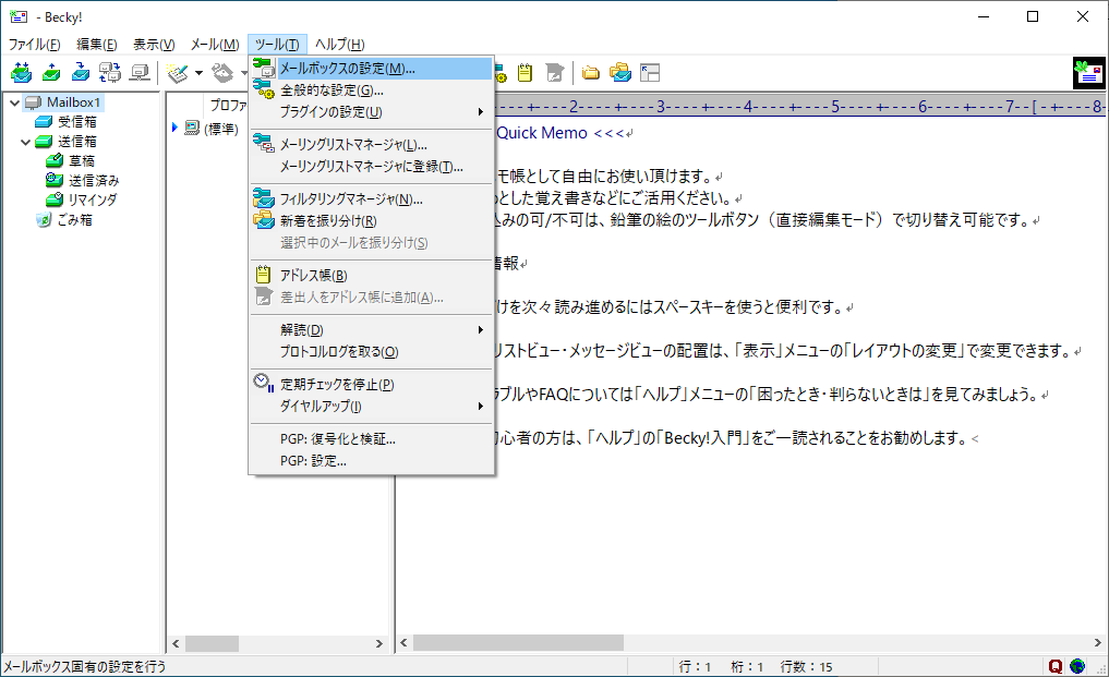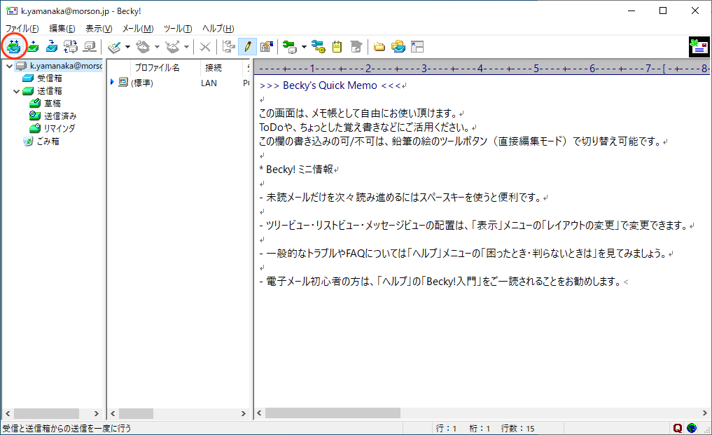 「送受信」ボタンを押してメールが受信できれば成功です。