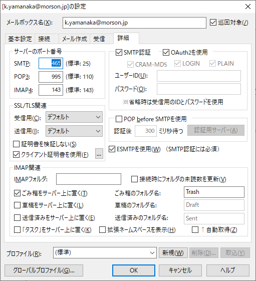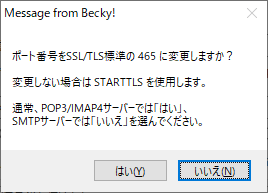 「SMTPS」へチェックをする際に以下のダイアログが表示されますので【はい】をクリックして下さい。